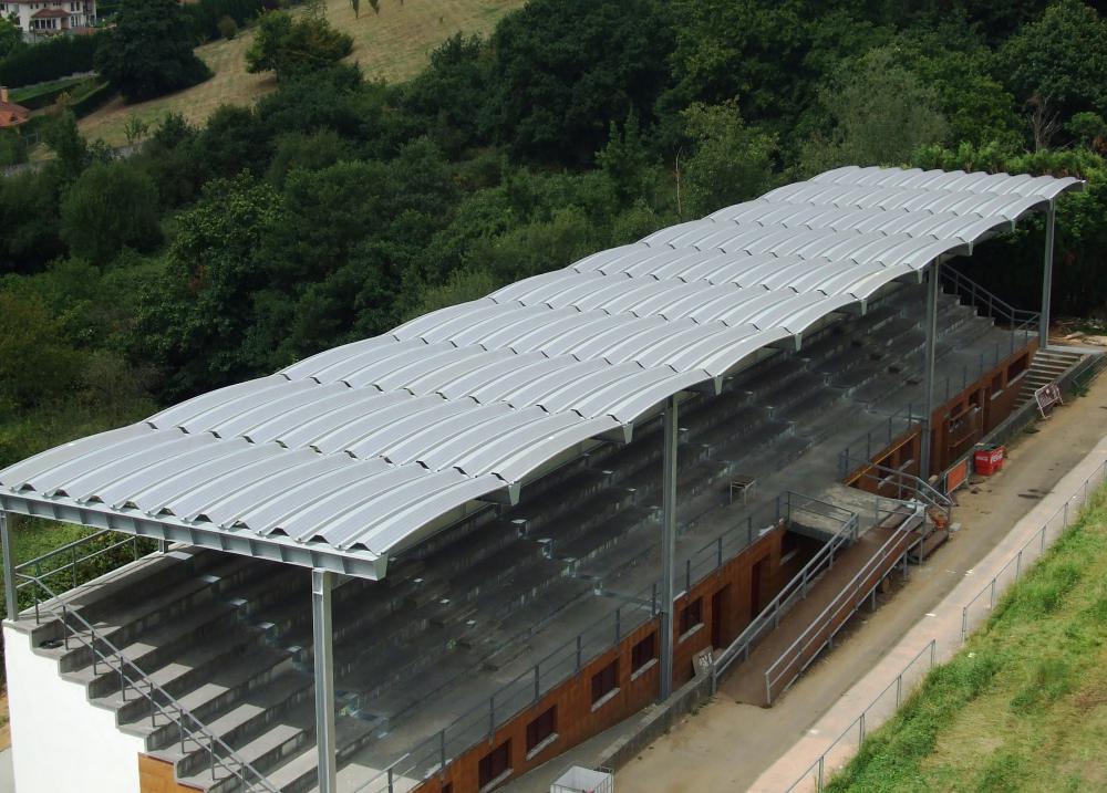 Los perfiles autoportantes curvados son una solución estructural versátil y eficiente para la ejecución de cubriciones de distinto tipo, marquesinas, instalaciones deportivas, graderios de estadios, almacenes de materiales, espacios entre contenedores, etc, etc, combinando altas prestaciones técnicas con un fuerte componente arquitectónico. Su geometría curva permite resolver cubiertas funcionales y estéticamente diferenciadas en proyectos industriales, deportivos y de uso público.